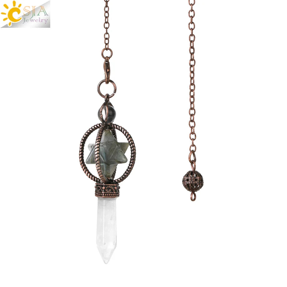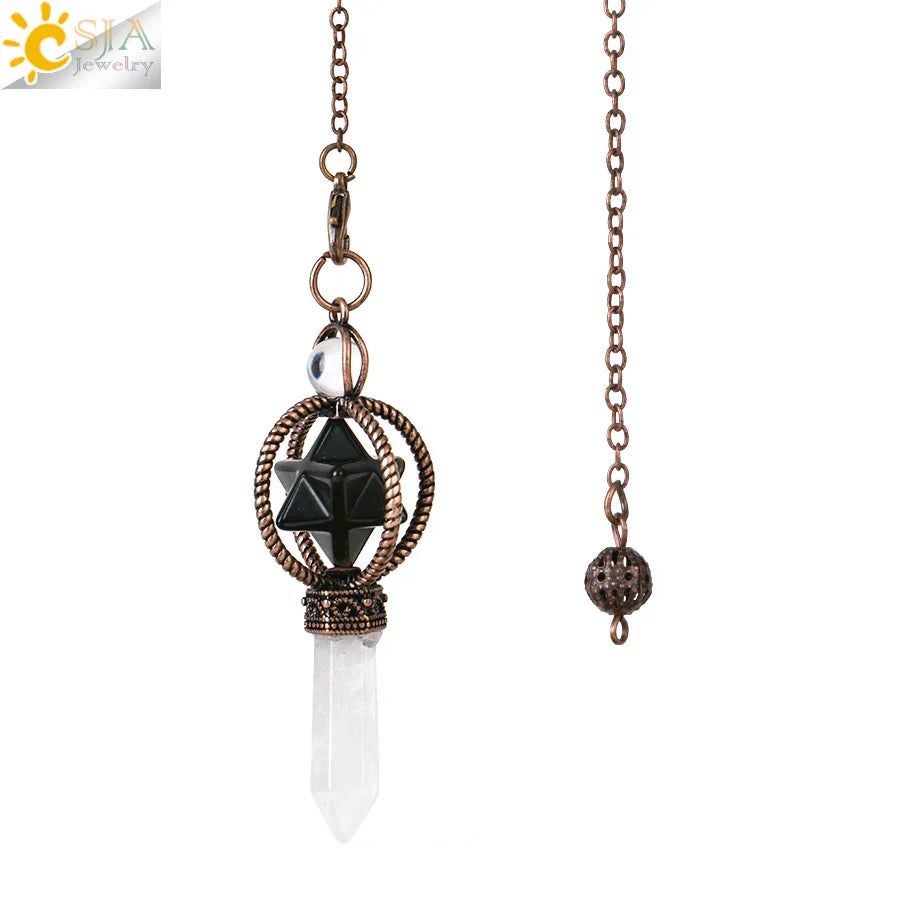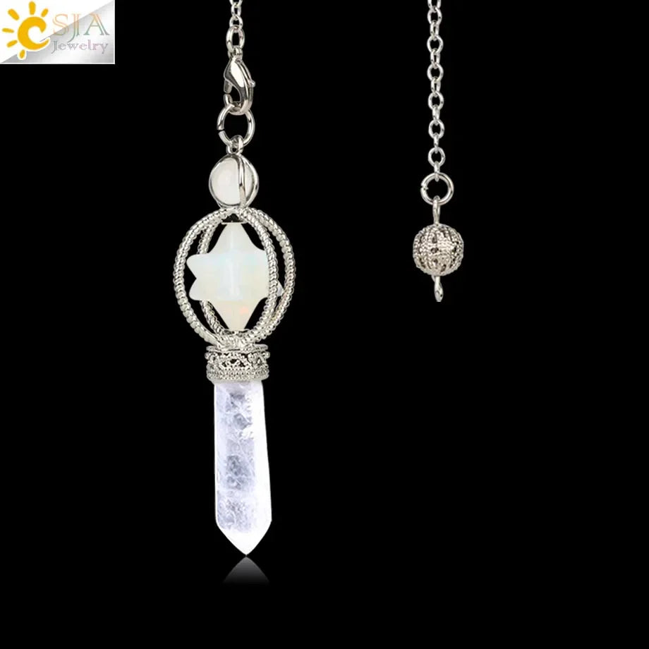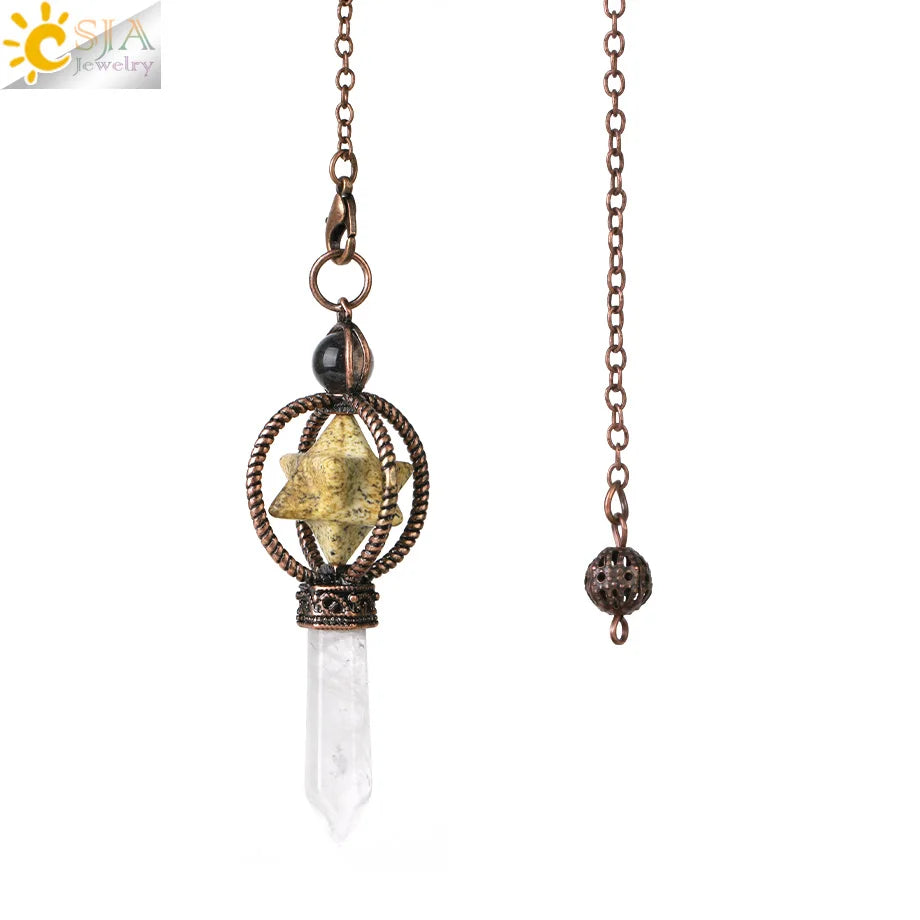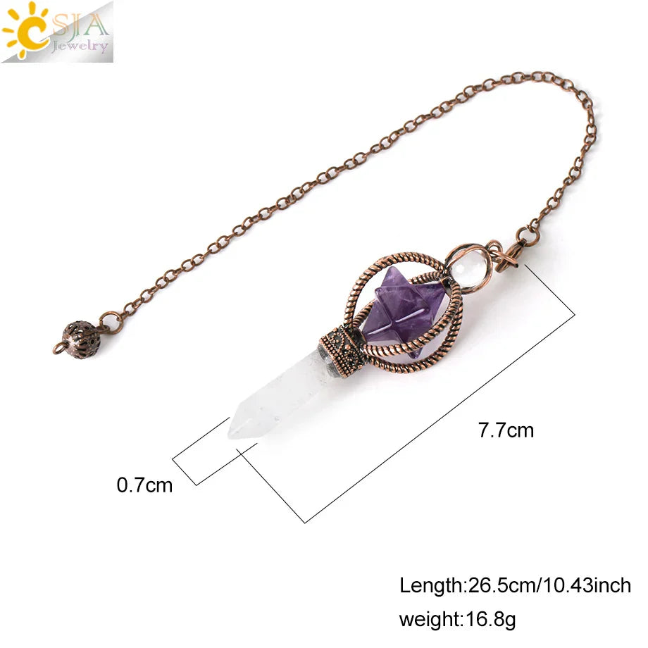 CSJA Esotericism Crystal Pendulum – Merkaba Clear Quartz Pendant for Dowsing & Divination