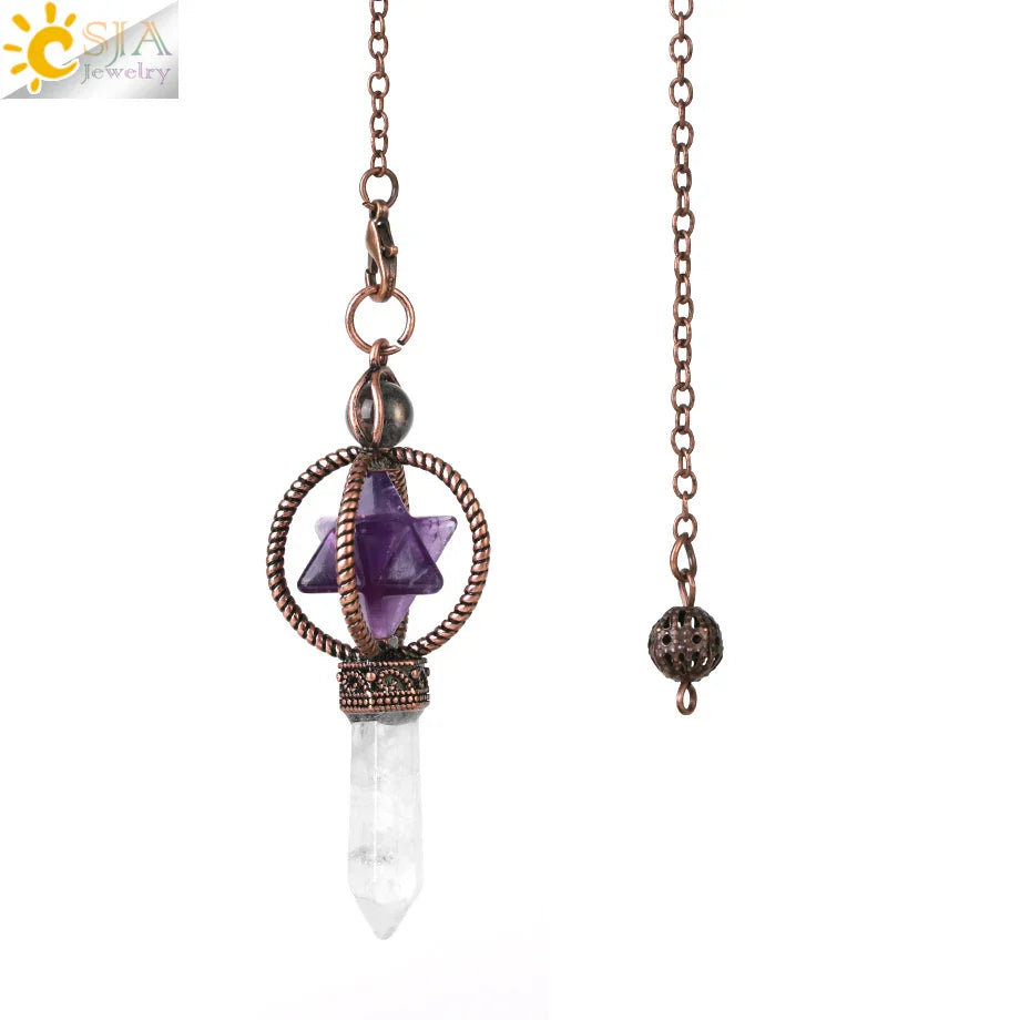 Channel higher wisdom and energetic balance with the CSJA Esotericism Crystal Pendulum, featuring a sacred Merkaba-shaped Clear Quartz pendant and elegant red bronze accents. A powerful tool for dowsing, divination, and chakra alignment.