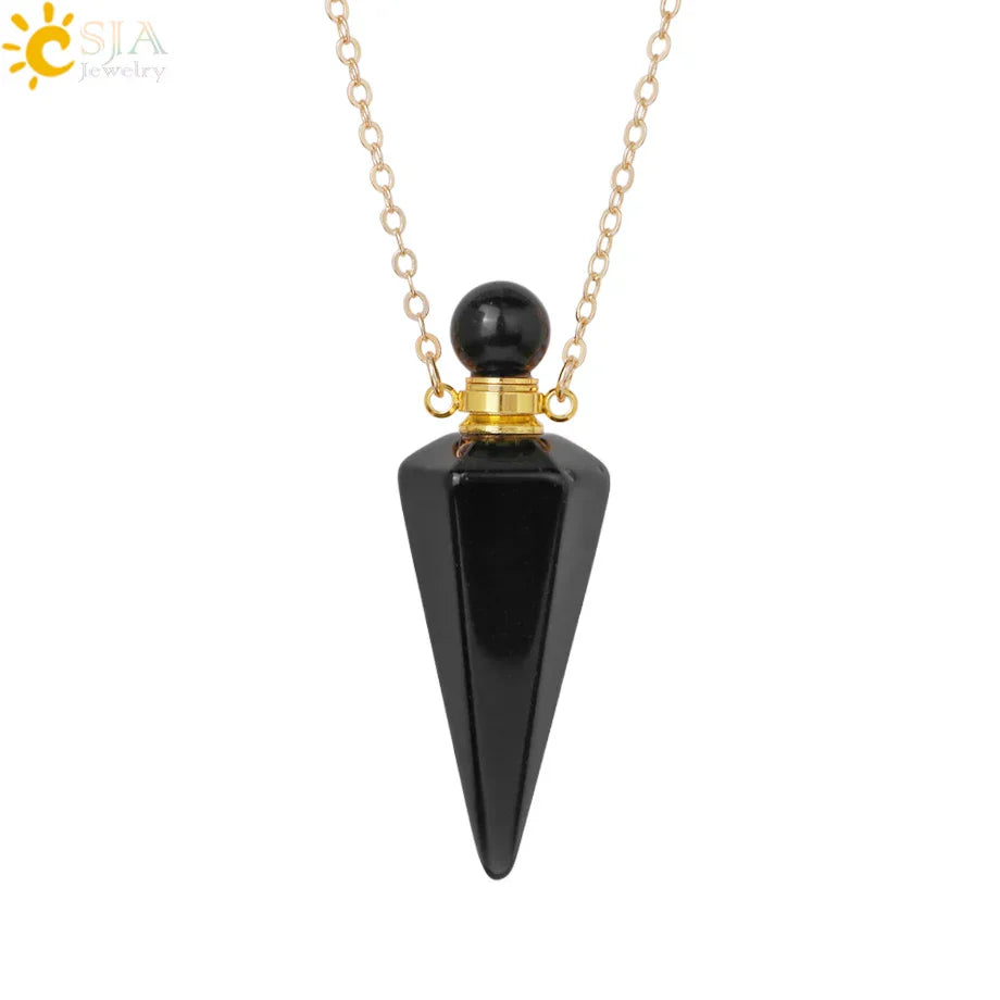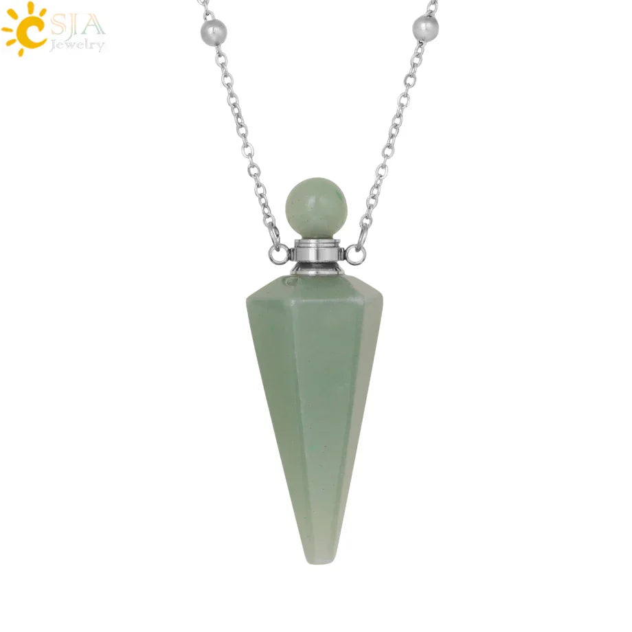 Natural Stone Cone Perfume Bottle Necklace – Clear Quartz Crystal Pendant & Essential Oil Diffuser