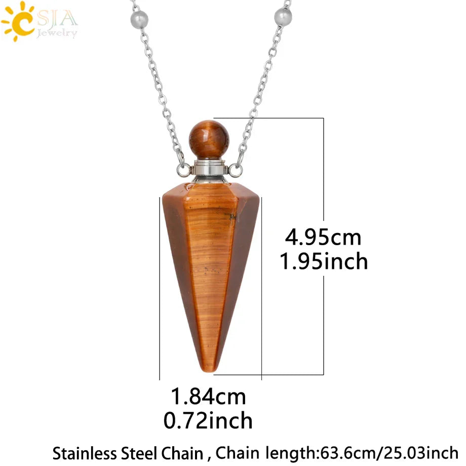 • Dual-purpose design: perfume/essential oil vial and healing crystal pendant