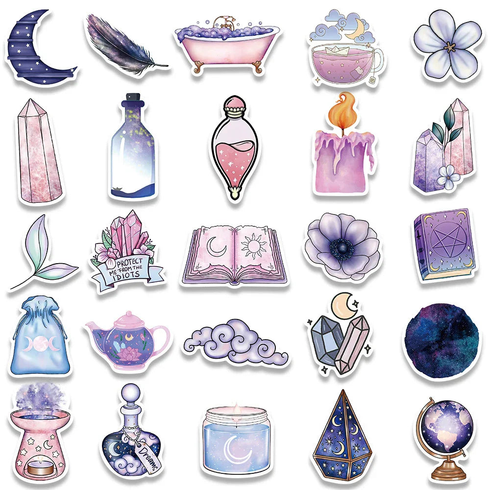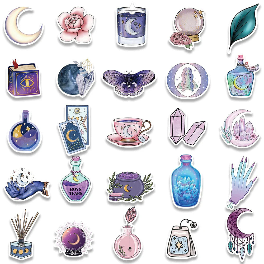 10/30/50/100pcs Magic Witch Moon Crystal Stickers – Cute Aesthetic Decals for Laptop, Scrapbook, Phone & More