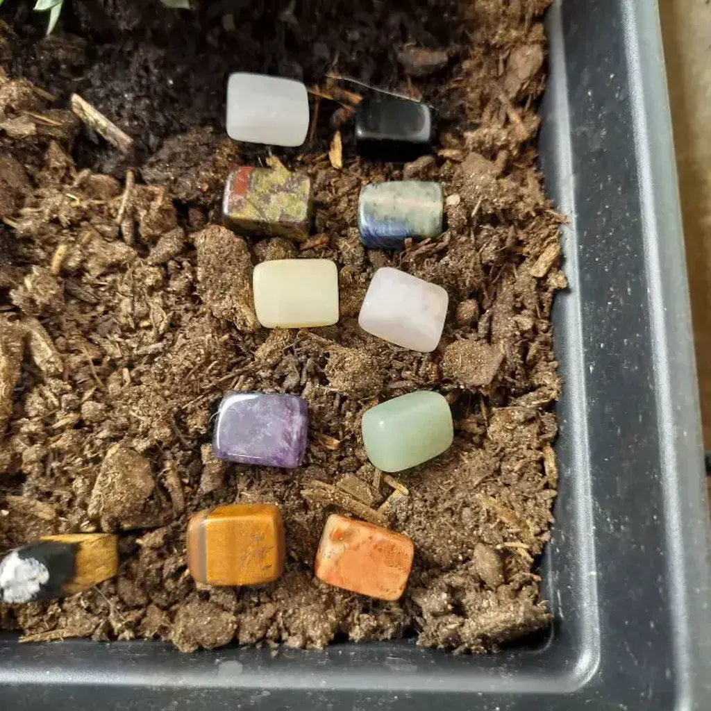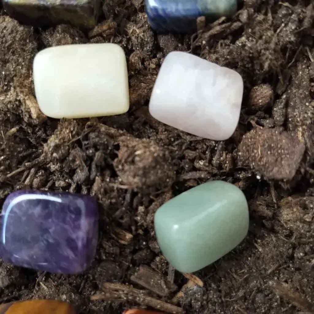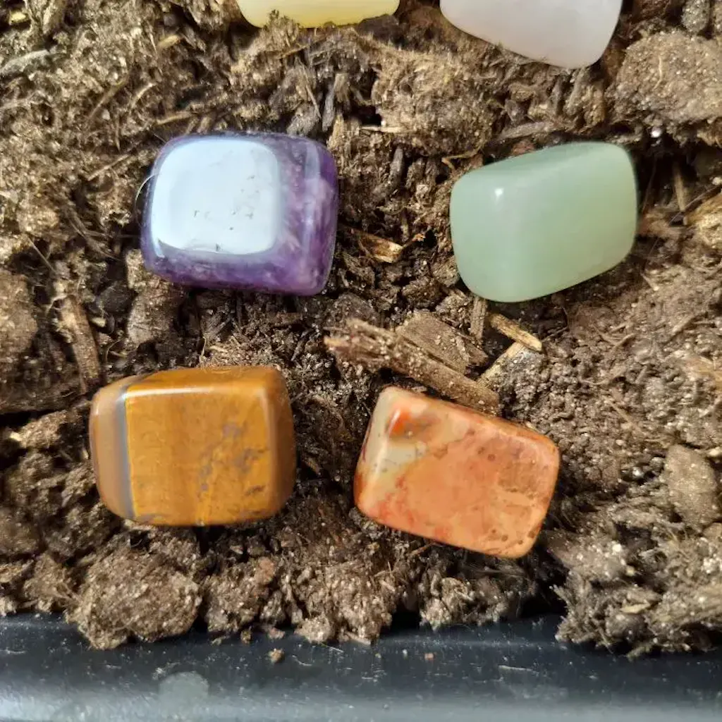 Includes a variety of natural stones such as quartz, rose quartz, amethyst, and mixed rocks